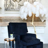 The stunning Ostrich Feather Floor Lamp is a luxurious and elegant addition to any home décor. The cascading feathers create a soft and inviting light that is warm and welcoming.